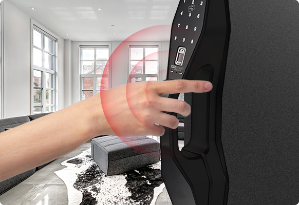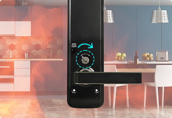 고온 감지 기능화재가 의심될 정도의 높은 온도가 감지되면(60°C±5°C), 안전을 위하여 강력한 경고음 발생과 함께 잠김 상태를 자동으로 해제합니다. 이중잠금 상태에서도 적용됩니다.