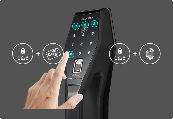 Double Authentication ModeIn addition to the registered password, this function requires additional authentication with a card key or fingerprint to open the door.